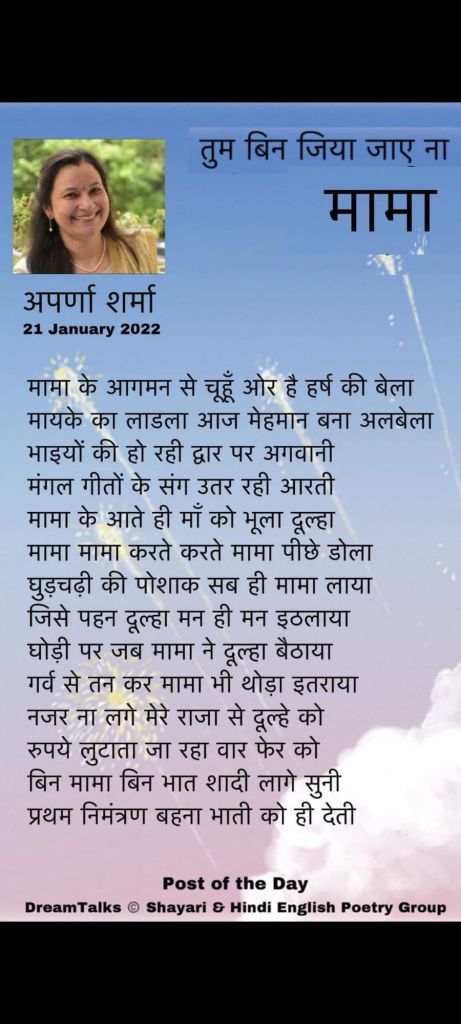गर्व से तन कर मामा भी थोड़ा इतराया।